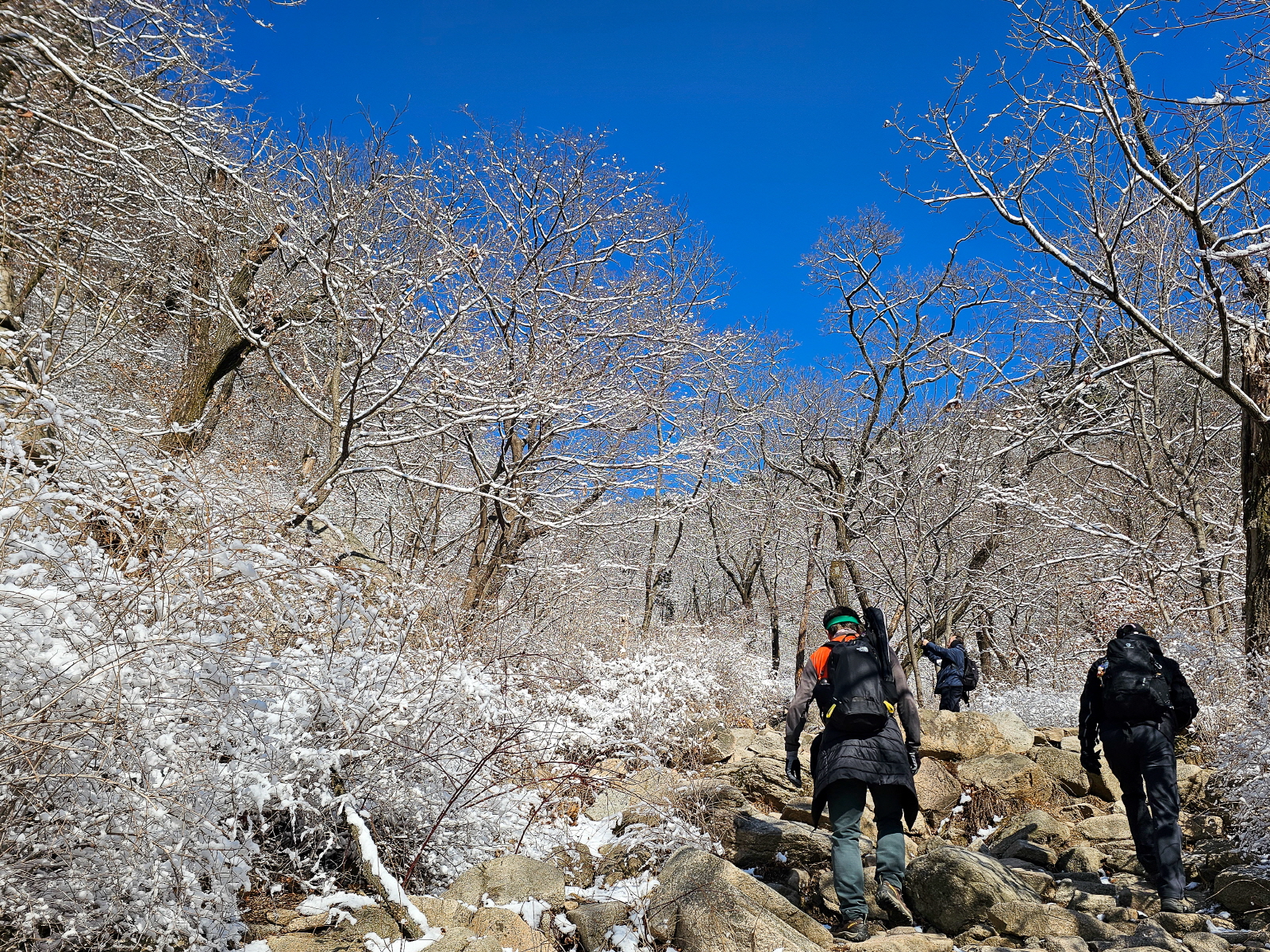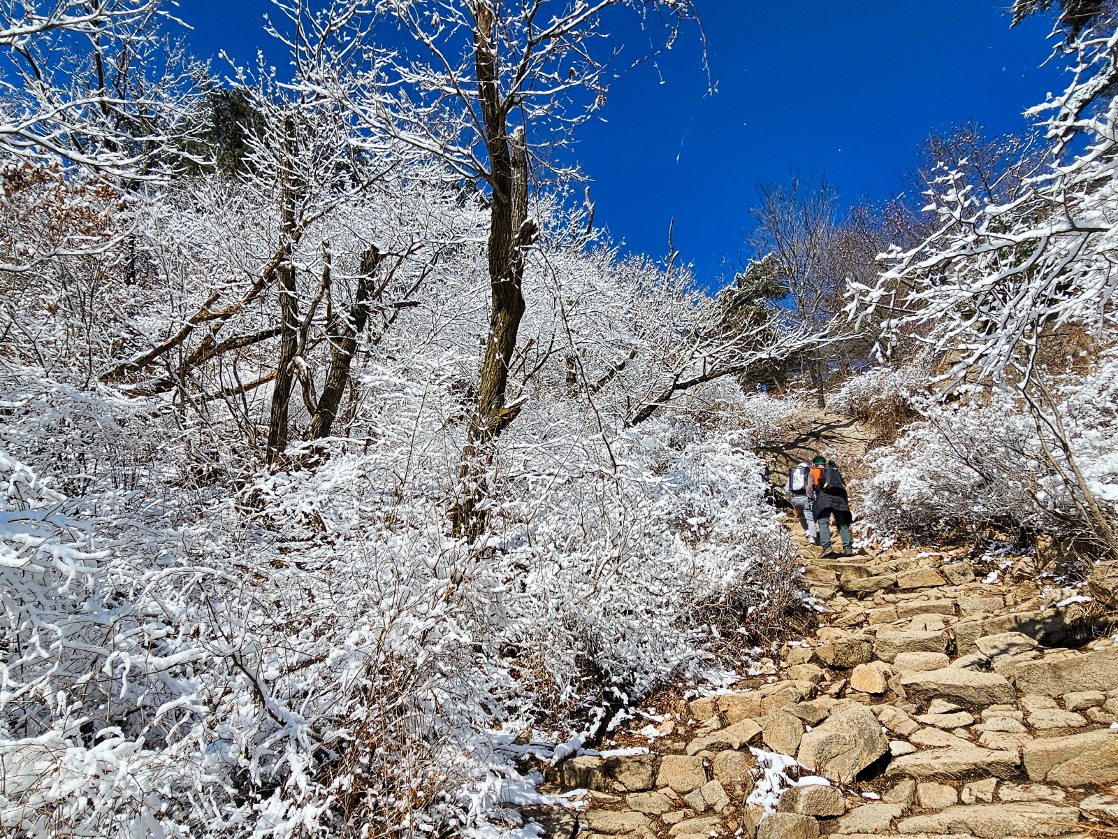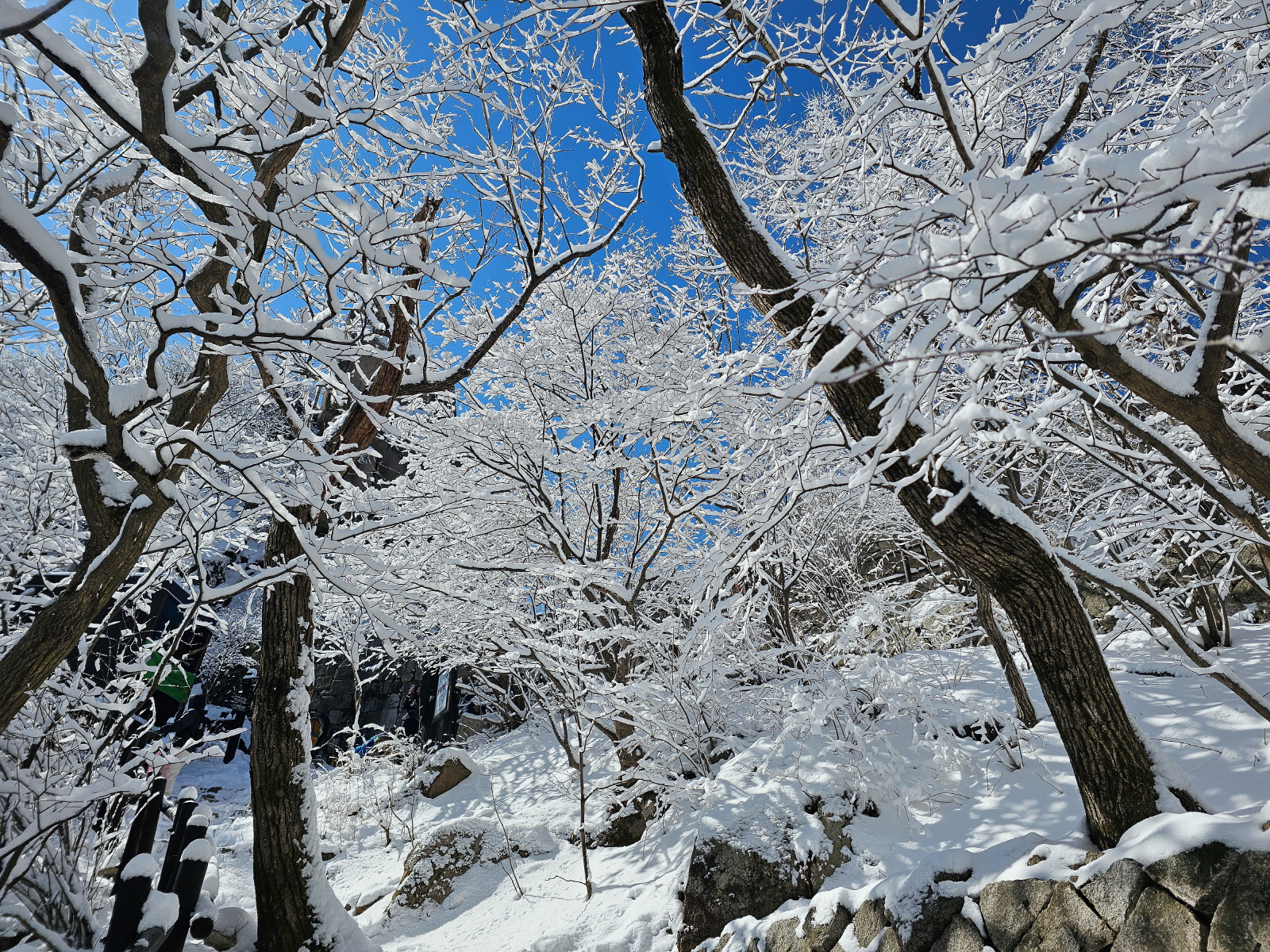 친구 넷이서 번개로 백운대를 찾았다 마침 전날 내린 눈이 눈꽃으로 피서 환상적 풍광을 연출하였다.