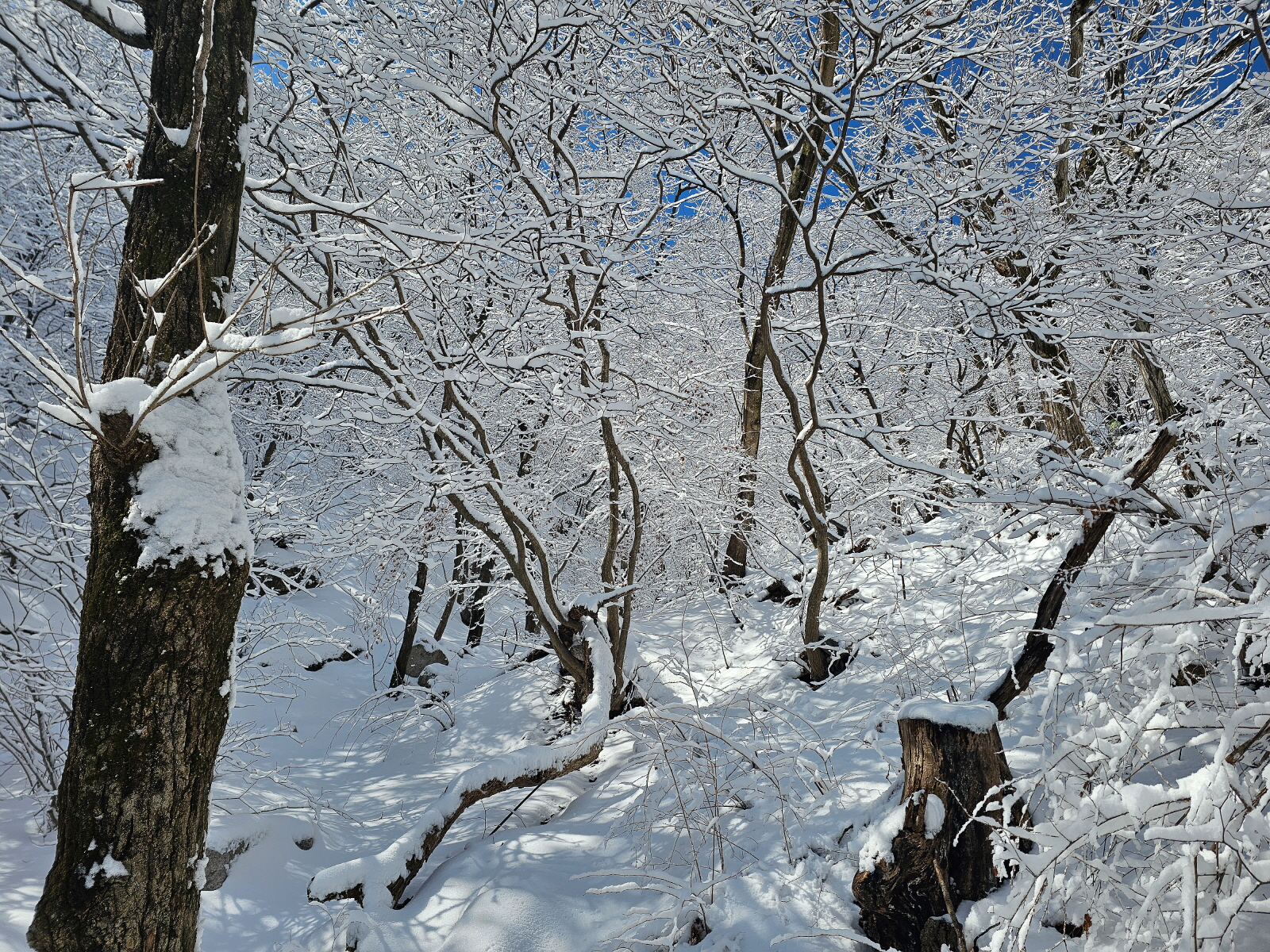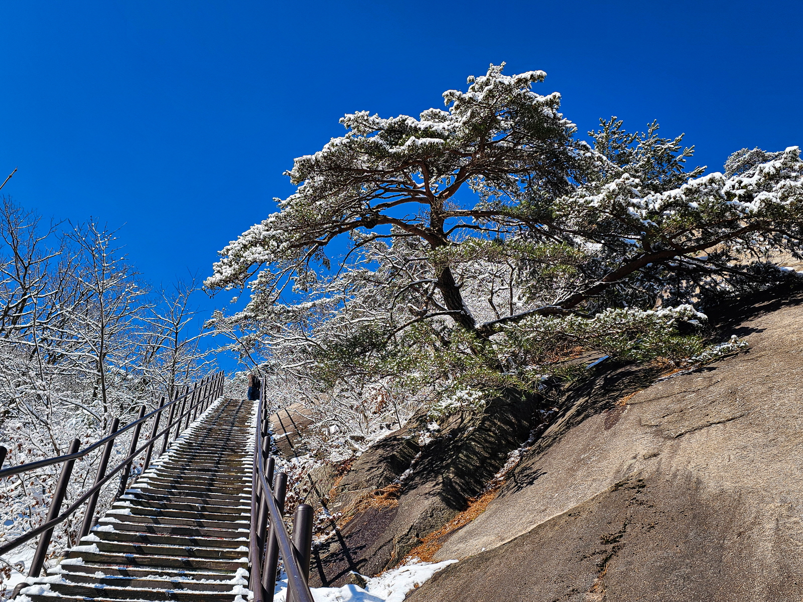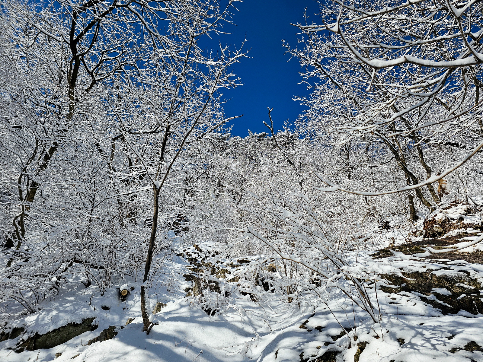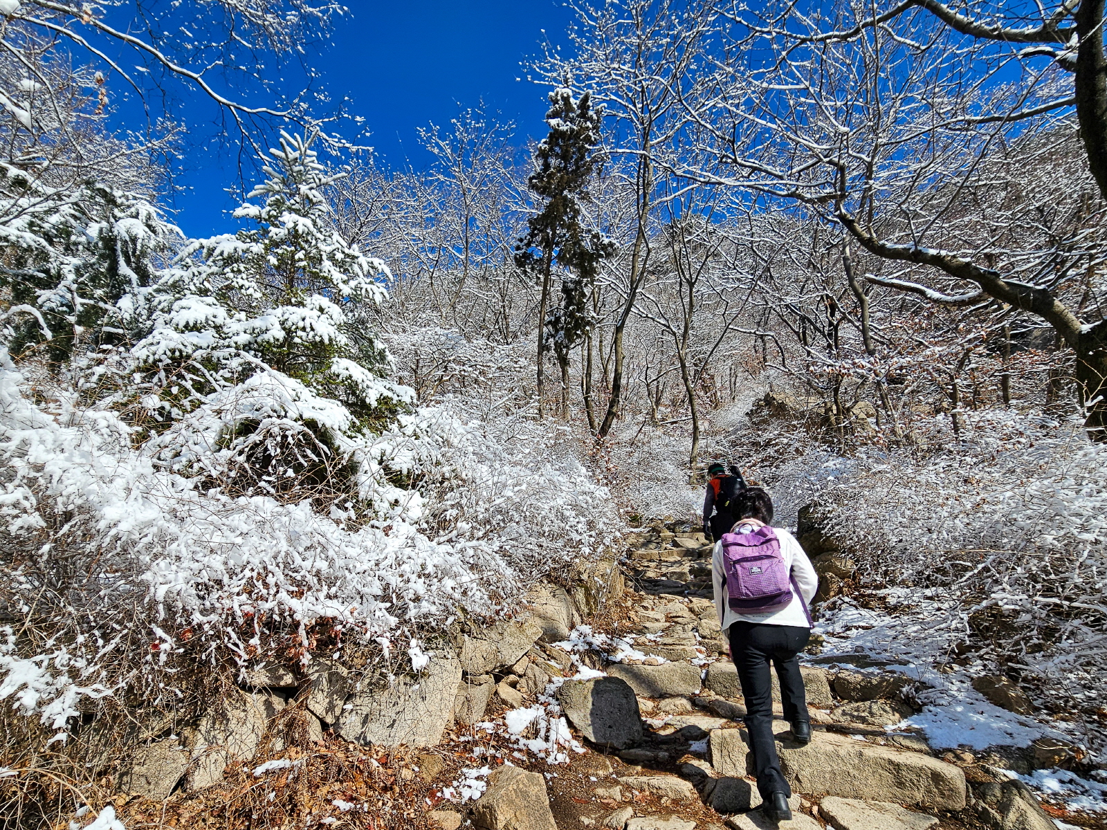 친구 넷이서 번개로 백운대를 찾았다 마침 전날 내린 눈이 눈꽃으로 피서 환상적 풍광을 연출하였다.